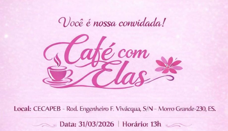 Para encerrar o mês de comemoração pelo Dia Internacional da Mulher, Cachoeiro realiza o “Café com Elas”: um evento que abordará a importância da contribuição feminina e a conquista de novos espaços no campo. O encontro acontecerá dia 31 de março, às 13h, no Centro de Capacitação e Pesquisa da Educação Básica “Dr. Dirceu Cardoso” (Cecapeb), em Morro Grande.